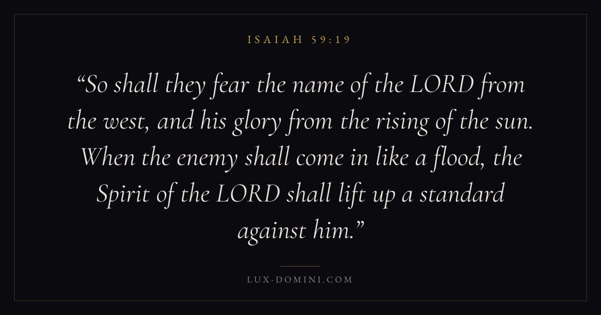 So shall they fear the name of the LORD from the west, and his glory from the rising of the sun. When the enemy shall come in like a flood, the Spirit of the LORD shall lift up a standard against him.