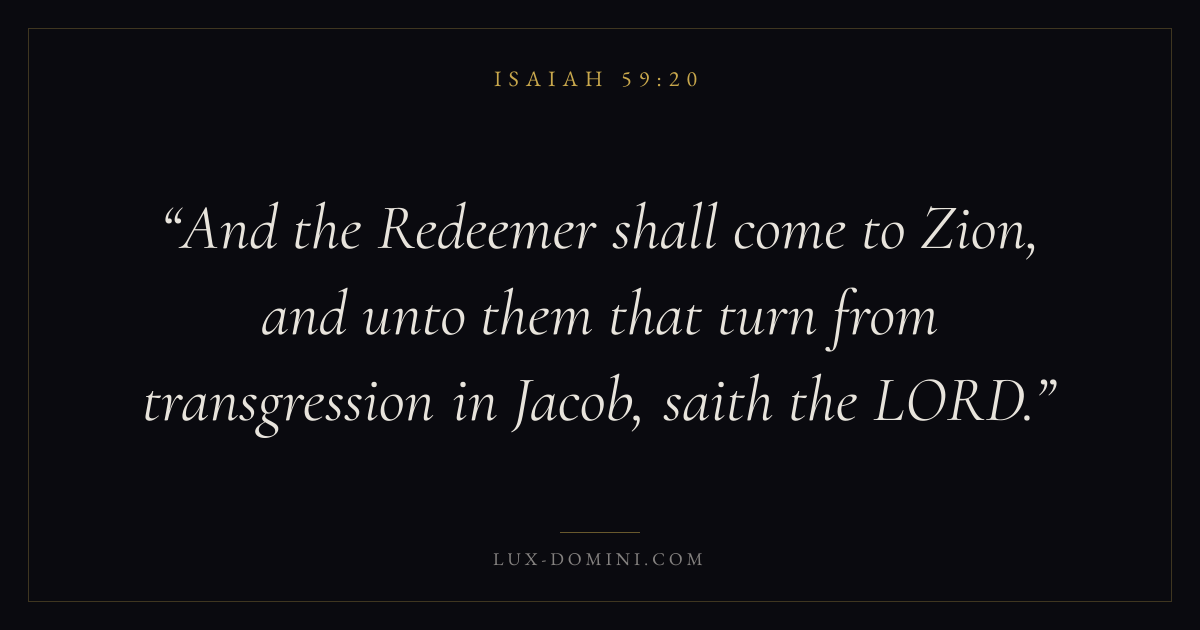 And the Redeemer shall come to Zion, and unto them that turn from transgression in Jacob, saith the LORD.