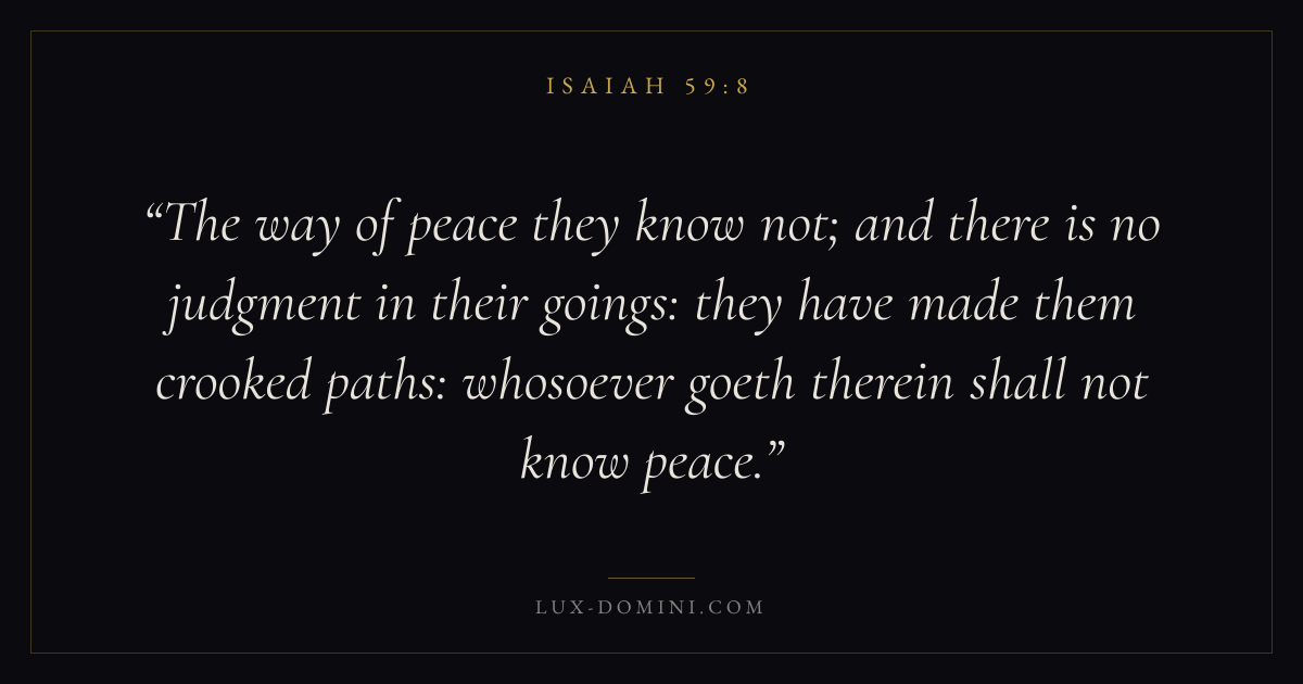 The way of peace they know not; and there is no judgment in their goings: they have made them crooked paths: whosoever goeth therein shall not know peace.