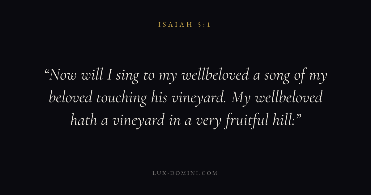 Now will I sing to my wellbeloved a song of my beloved touching his vineyard. My wellbeloved hath a vineyard in a very fruitful hill: