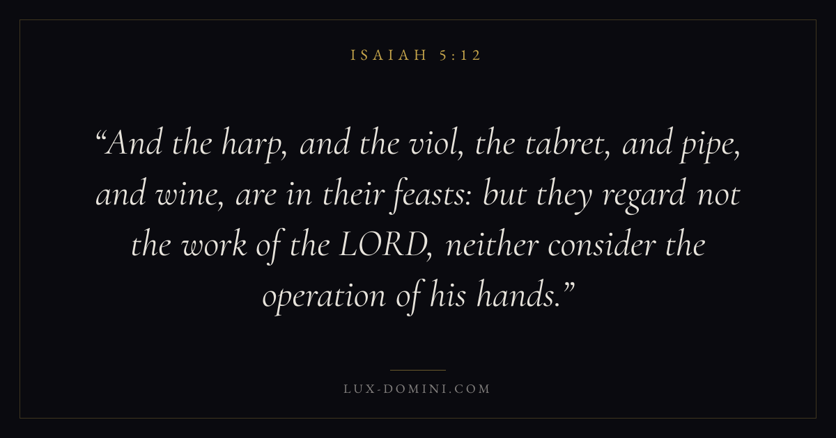 And the harp, and the viol, the tabret, and pipe, and wine, are in their feasts: but they regard not the work of the LORD, neither consider the operation of his hands.
