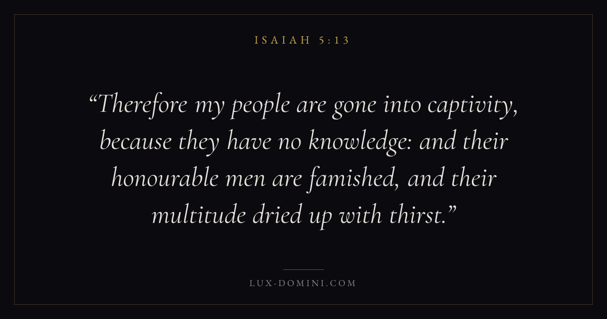 Therefore my people are gone into captivity, because they have no knowledge: and their honourable men are famished, and their multitude dried up with thirst.