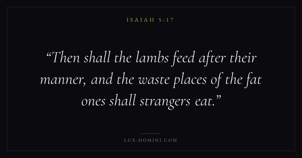 Then shall the lambs feed after their manner, and the waste places of the fat ones shall strangers eat.