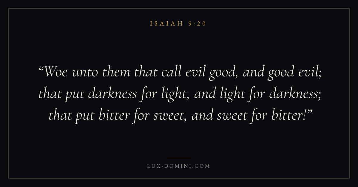 Woe unto them that call evil good, and good evil; that put darkness for light, and light for darkness; that put bitter for sweet, and sweet for bitter!
