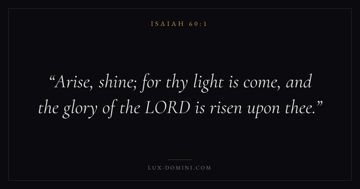 Arise, shine; for thy light is come, and the glory of the LORD is risen upon thee.