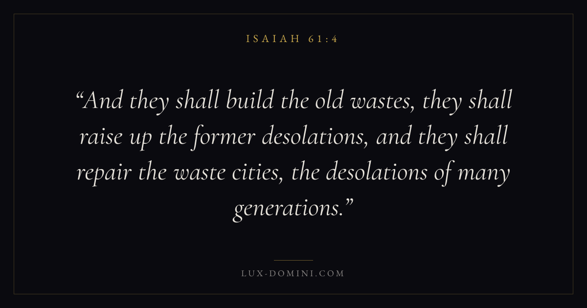 And they shall build the old wastes, they shall raise up the former desolations, and they shall repair the waste cities, the desolations of many generations.