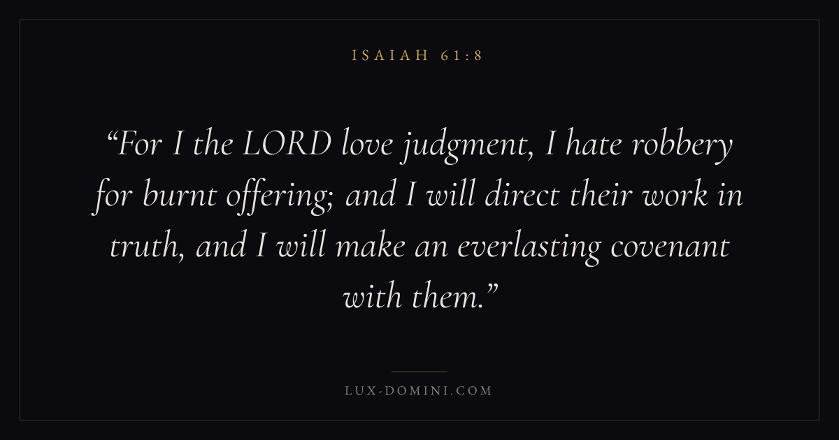 For I the LORD love judgment, I hate robbery for burnt offering; and I will direct their work in truth, and I will make an everlasting covenant with them.