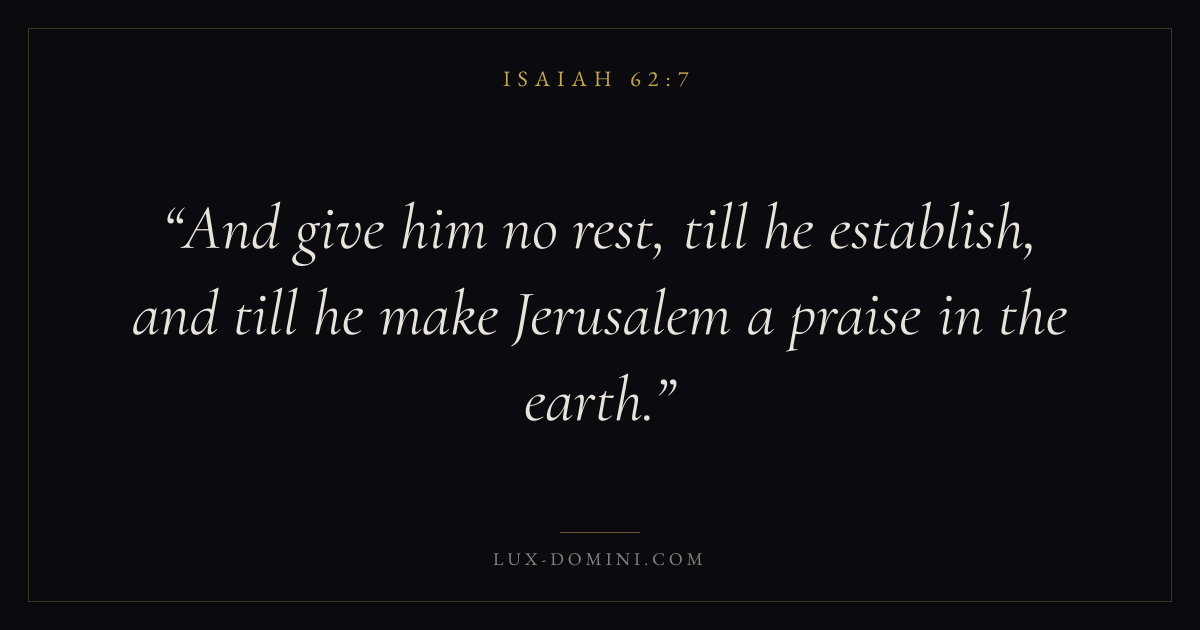 And give him no rest, till he establish, and till he make Jerusalem a praise in the earth.