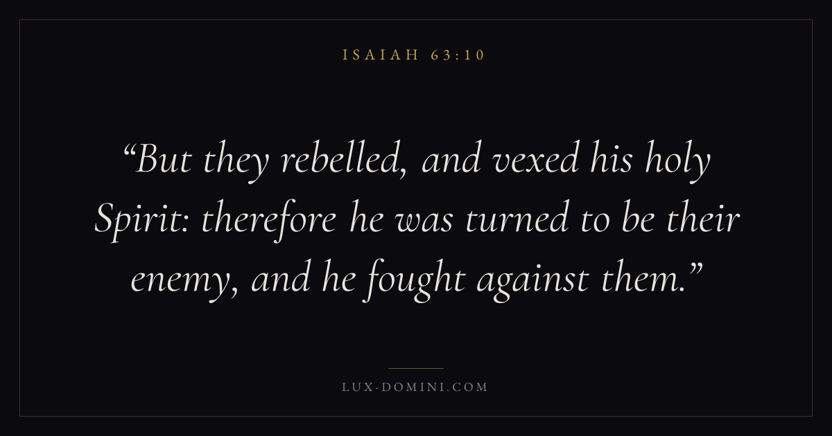 But they rebelled, and vexed his holy Spirit: therefore he was turned to be their enemy, and he fought against them.