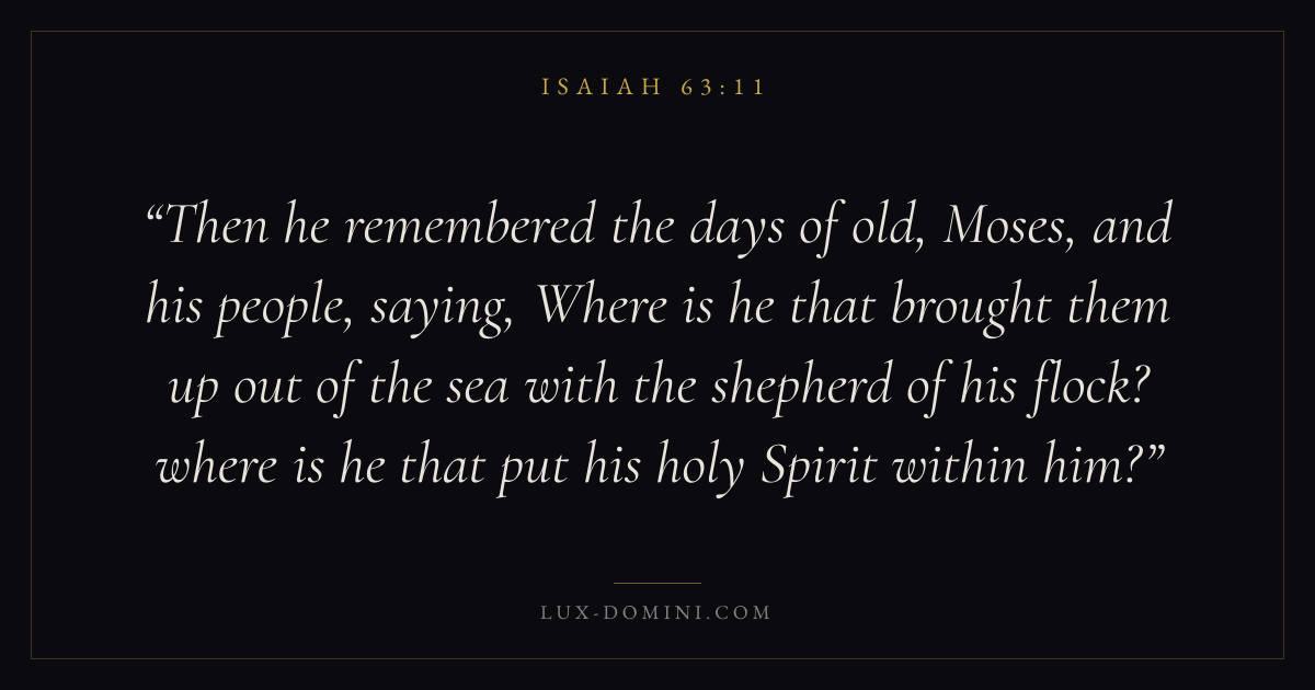Then he remembered the days of old, Moses, and his people, saying, Where is he that brought them up out of the sea with the shepherd of his flock? where is he that put his holy Spirit within him?