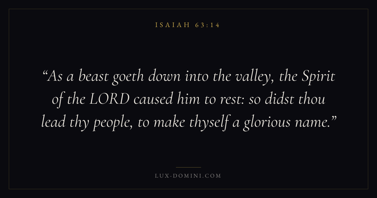As a beast goeth down into the valley, the Spirit of the LORD caused him to rest: so didst thou lead thy people, to make thyself a glorious name.