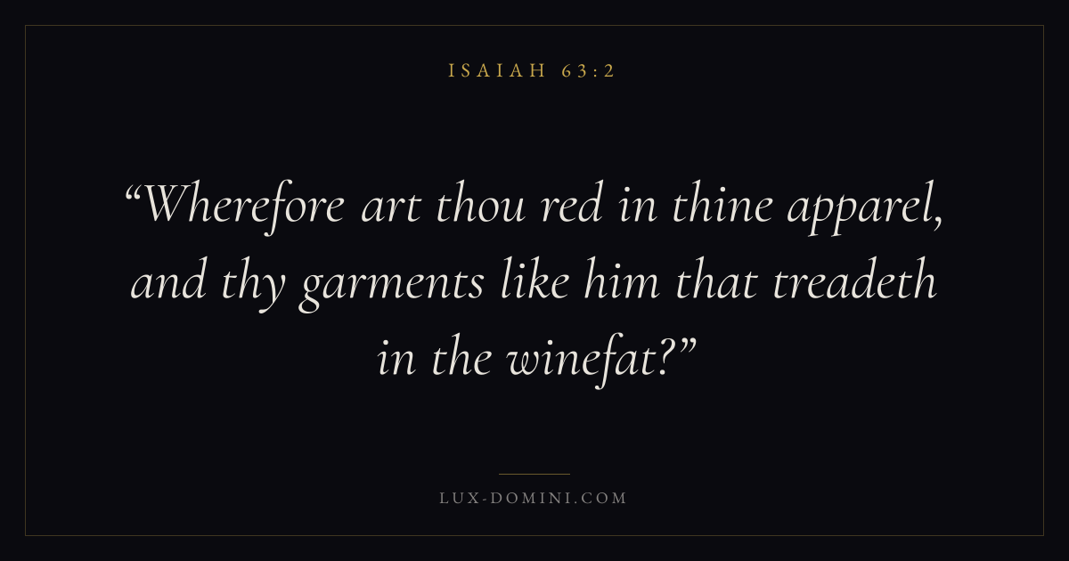 Wherefore art thou red in thine apparel, and thy garments like him that treadeth in the winefat?