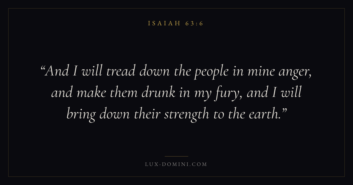 And I will tread down the people in mine anger, and make them drunk in my fury, and I will bring down their strength to the earth.