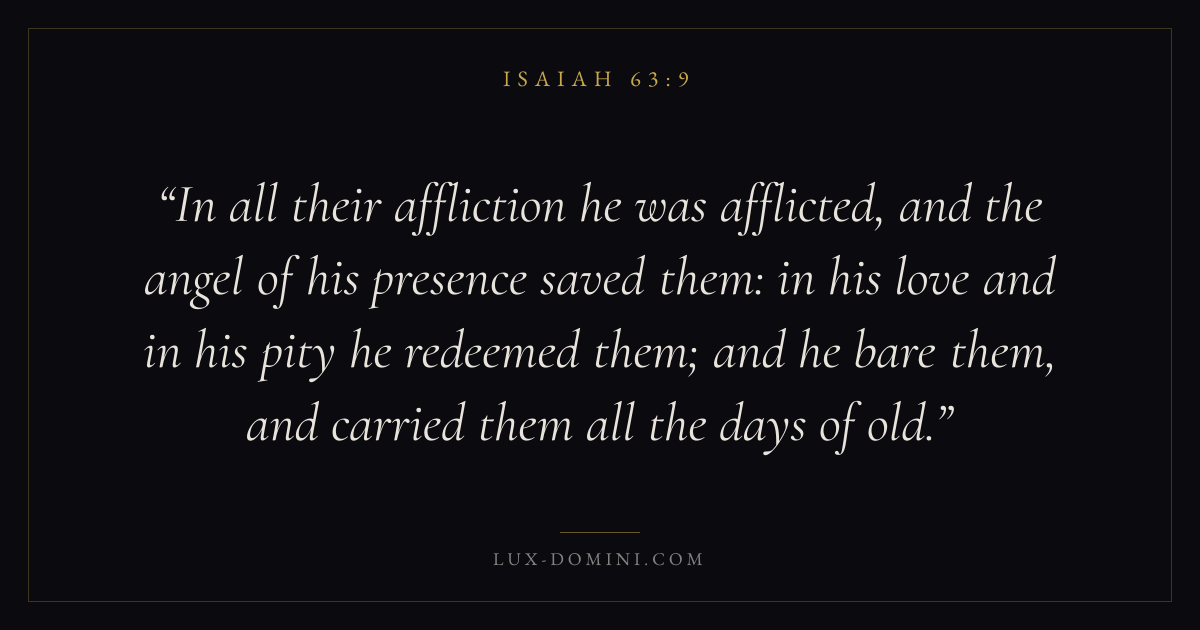 In all their affliction he was afflicted, and the angel of his presence saved them: in his love and in his pity he redeemed them; and he bare them, and carried them all the days of old.