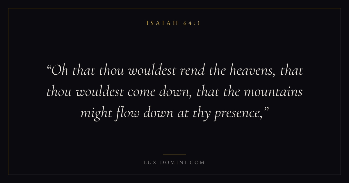 Oh that thou wouldest rend the heavens, that thou wouldest come down, that the mountains might flow down at thy presence,