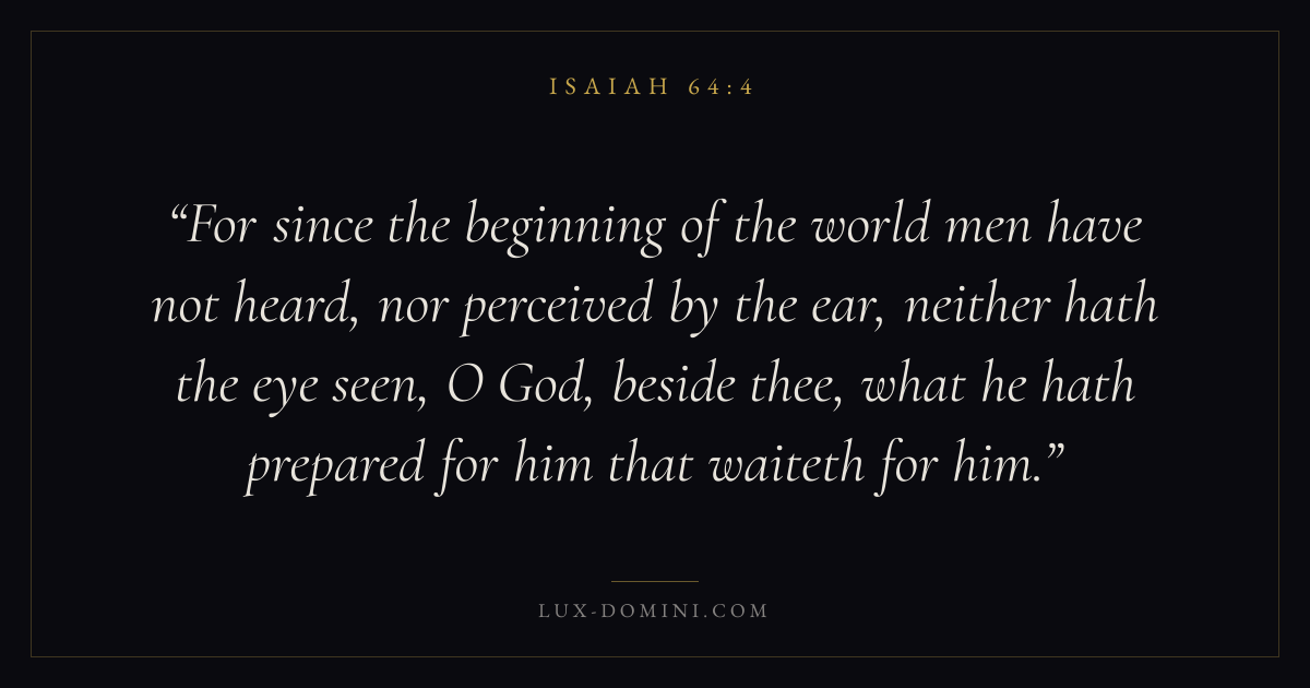 For since the beginning of the world men have not heard, nor perceived by the ear, neither hath the eye seen, O God, beside thee, what he hath prepared for him that waiteth for him.