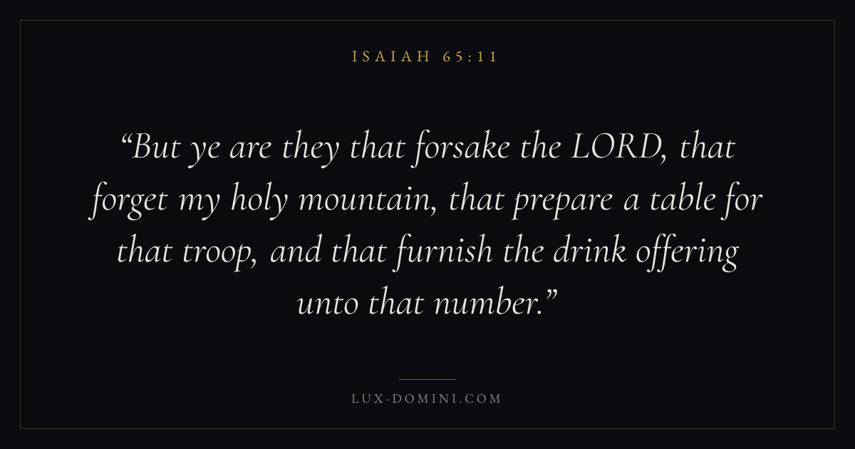 But ye are they that forsake the LORD, that forget my holy mountain, that prepare a table for that troop, and that furnish the drink offering unto that number.