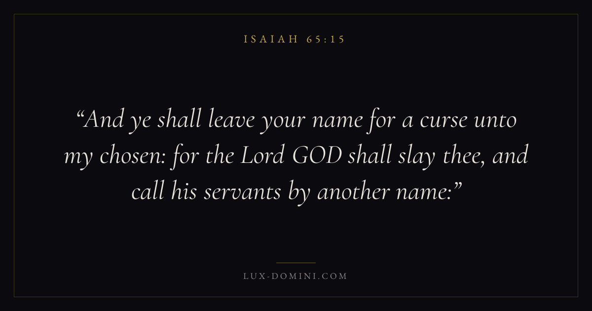 And ye shall leave your name for a curse unto my chosen: for the Lord GOD shall slay thee, and call his servants by another name: