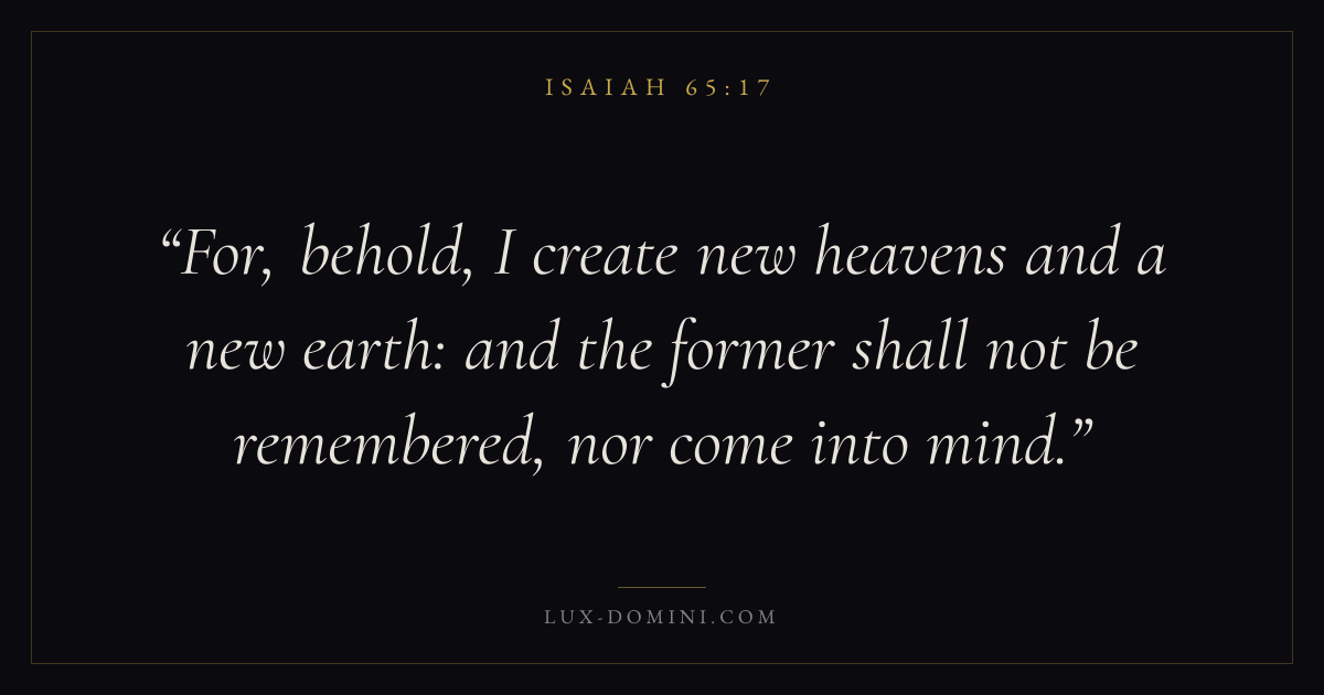 For, behold, I create new heavens and a new earth: and the former shall not be remembered, nor come into mind.