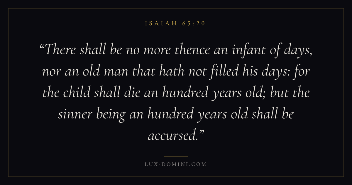 There shall be no more thence an infant of days, nor an old man that hath not filled his days: for the child shall die an hundred years old; but the sinner being an hundred years old shall be accursed.