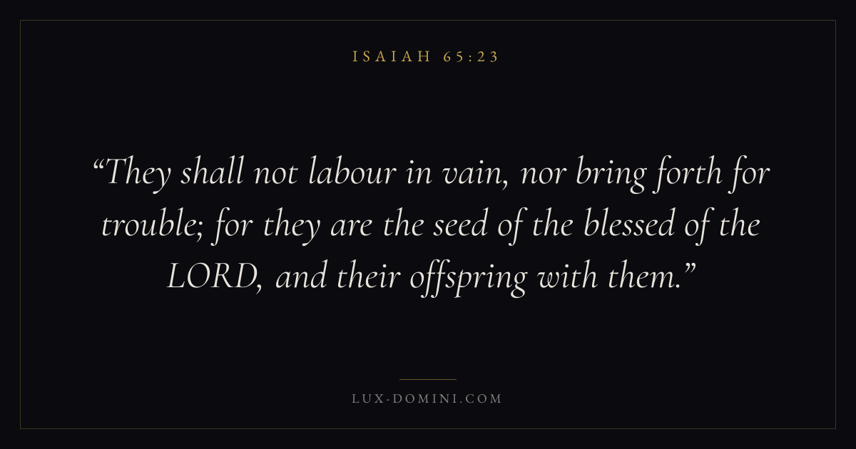 They shall not labour in vain, nor bring forth for trouble; for they are the seed of the blessed of the LORD, and their offspring with them.
