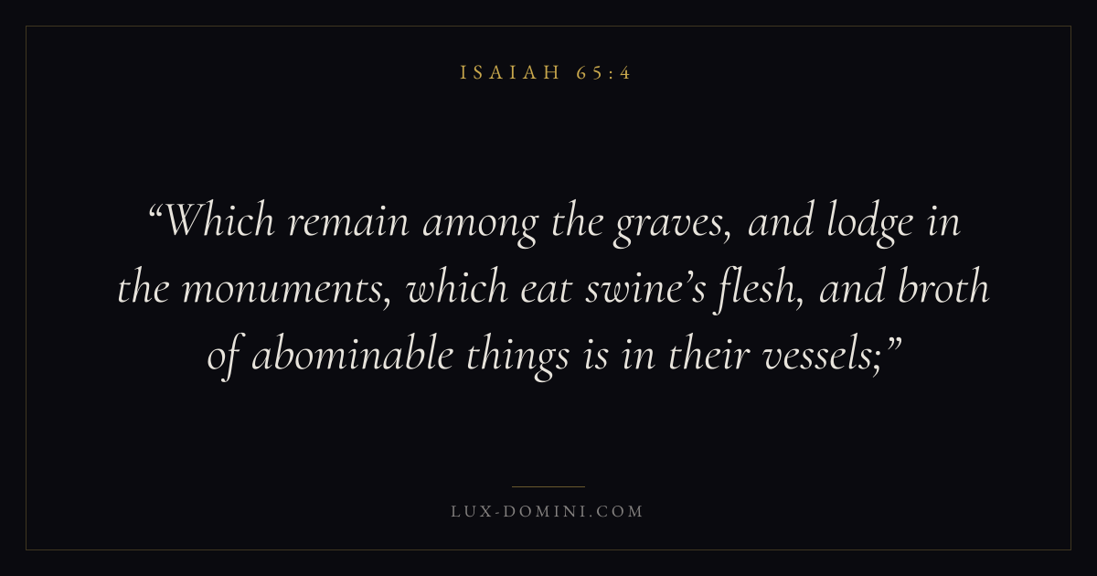 Which remain among the graves, and lodge in the monuments, which eat swine’s flesh, and broth of abominable things is in their vessels;