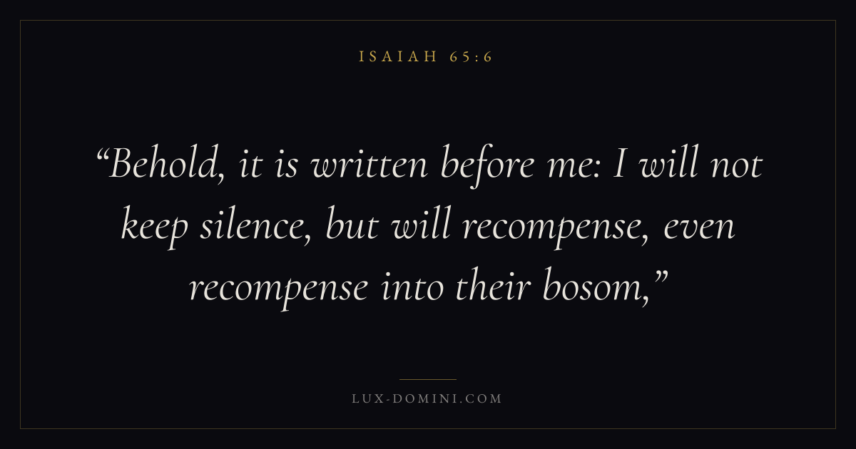 Behold, it is written before me: I will not keep silence, but will recompense, even recompense into their bosom,