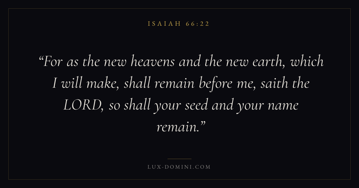 For as the new heavens and the new earth, which I will make, shall remain before me, saith the LORD, so shall your seed and your name remain.