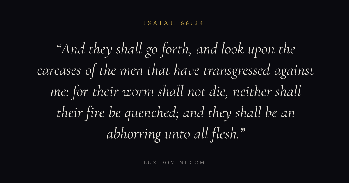 And they shall go forth, and look upon the carcases of the men that have transgressed against me: for their worm shall not die, neither shall their fire be quenched; and they shall be an abhorring unto all flesh.