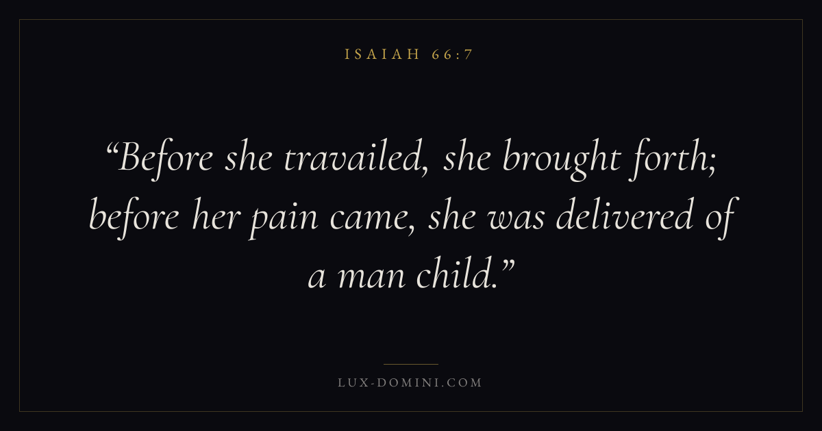 Before she travailed, she brought forth; before her pain came, she was delivered of a man child.