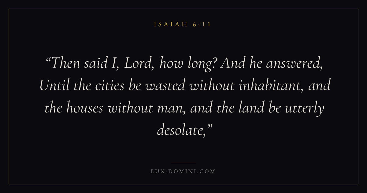 Then said I, Lord, how long? And he answered, Until the cities be wasted without inhabitant, and the houses without man, and the land be utterly desolate,