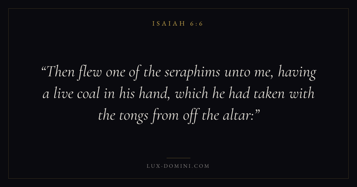 Then flew one of the seraphims unto me, having a live coal in his hand, which he had taken with the tongs from off the altar: