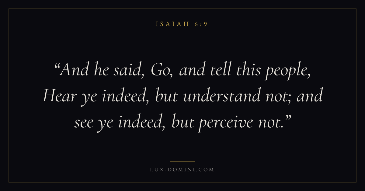 And he said, Go, and tell this people, Hear ye indeed, but understand not; and see ye indeed, but perceive not.