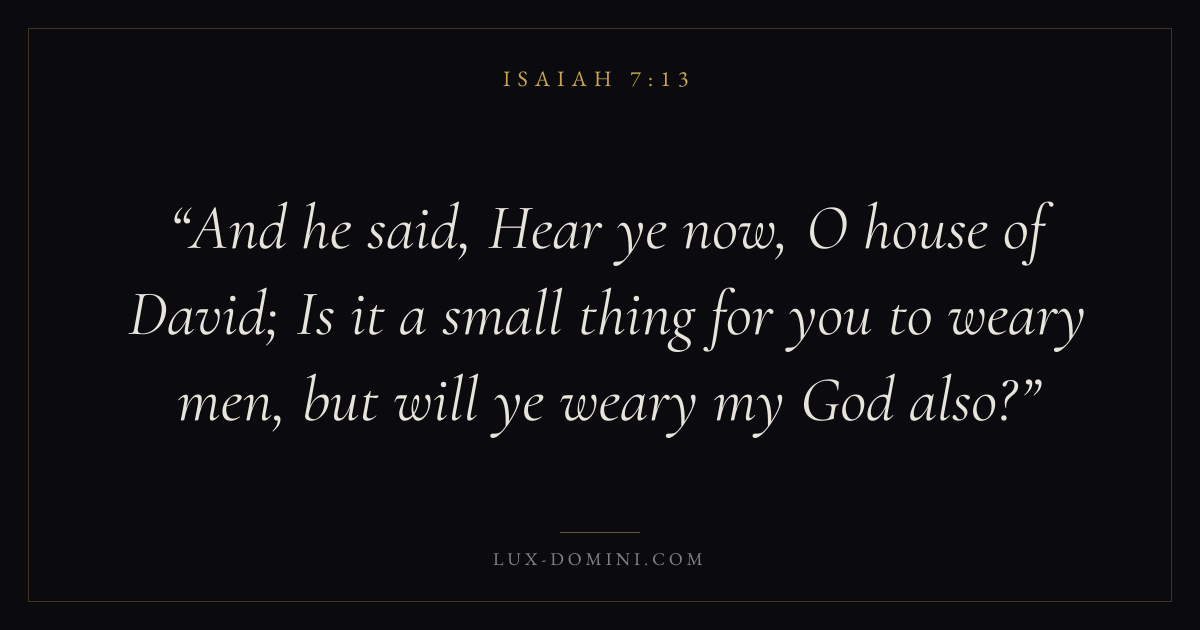 And he said, Hear ye now, O house of David; Is it a small thing for you to weary men, but will ye weary my God also?