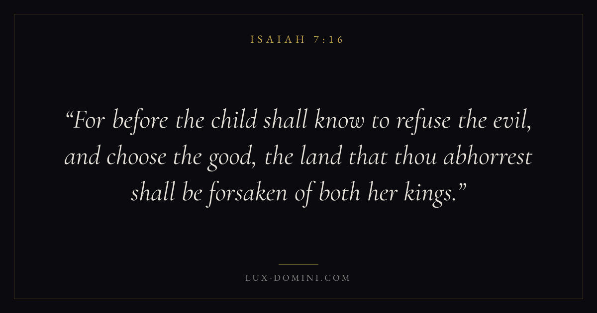 For before the child shall know to refuse the evil, and choose the good, the land that thou abhorrest shall be forsaken of both her kings.