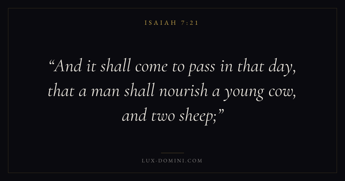 And it shall come to pass in that day, that a man shall nourish a young cow, and two sheep;