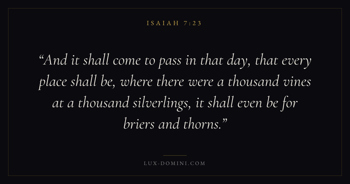And it shall come to pass in that day, that every place shall be, where there were a thousand vines at a thousand silverlings, it shall even be for briers and thorns.