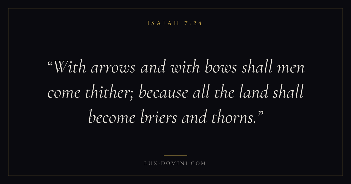 With arrows and with bows shall men come thither; because all the land shall become briers and thorns.