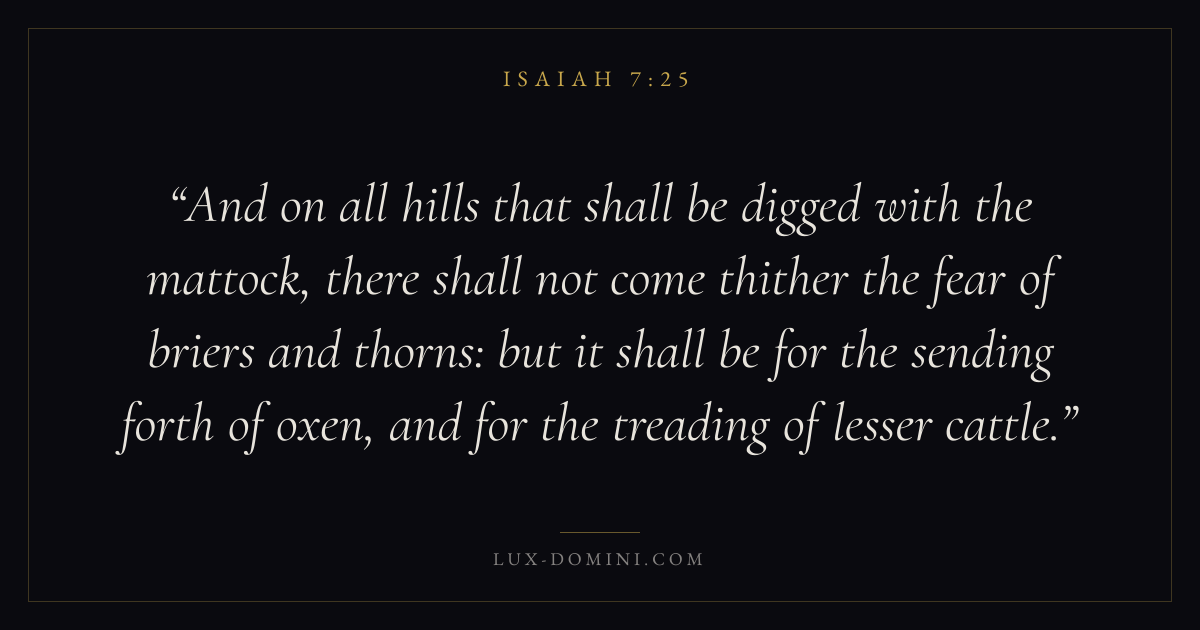 And on all hills that shall be digged with the mattock, there shall not come thither the fear of briers and thorns: but it shall be for the sending forth of oxen, and for the treading of lesser cattle.