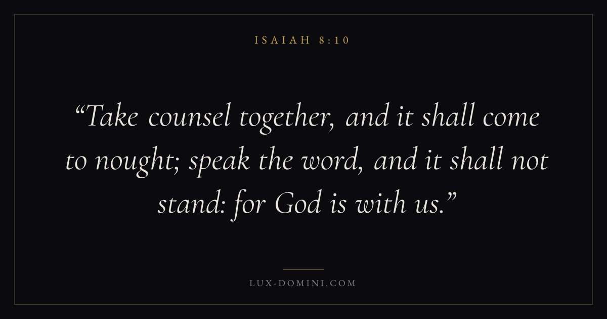 Take counsel together, and it shall come to nought; speak the word, and it shall not stand: for God is with us.