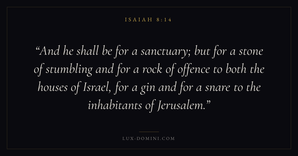 And he shall be for a sanctuary; but for a stone of stumbling and for a rock of offence to both the houses of Israel, for a gin and for a snare to the inhabitants of Jerusalem.