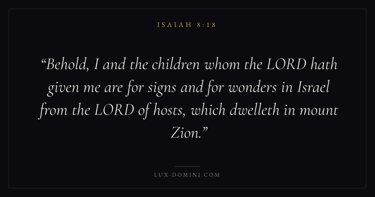 Behold, I and the children whom the LORD hath given me are for signs and for wonders in Israel from the LORD of hosts, which dwelleth in mount Zion.
