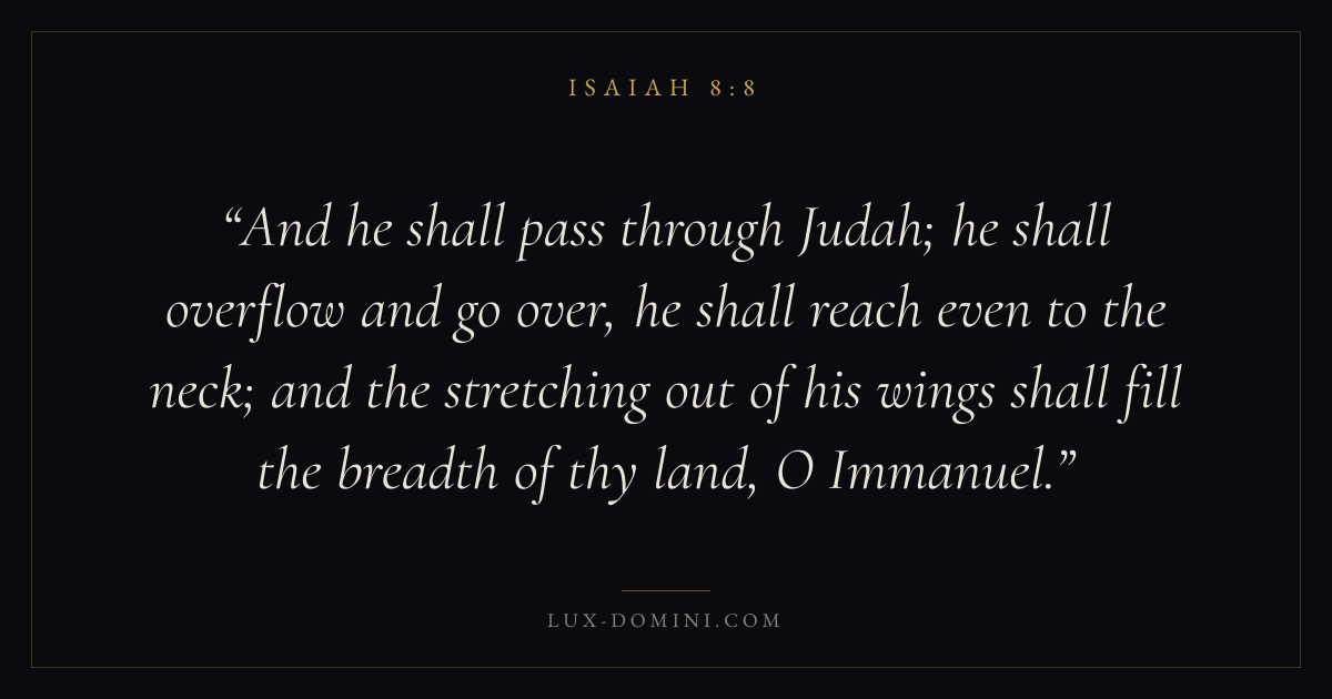 And he shall pass through Judah; he shall overflow and go over, he shall reach even to the neck; and the stretching out of his wings shall fill the breadth of thy land, O Immanuel.