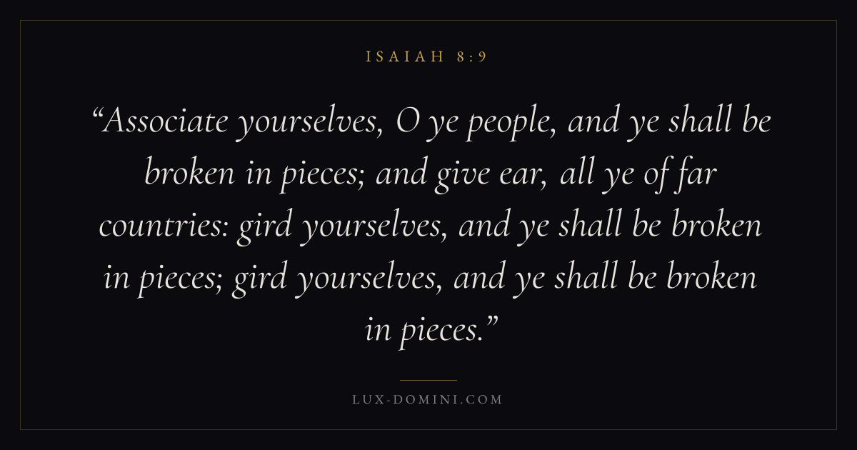 Associate yourselves, O ye people, and ye shall be broken in pieces; and give ear, all ye of far countries: gird yourselves, and ye shall be broken in pieces; gird yourselves, and ye shall be broken in pieces.