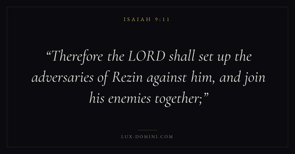 Therefore the LORD shall set up the adversaries of Rezin against him, and join his enemies together;