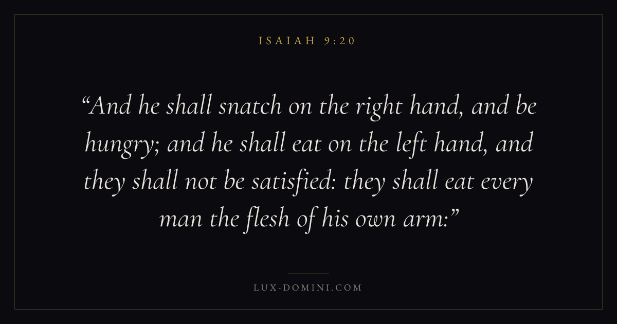 And he shall snatch on the right hand, and be hungry; and he shall eat on the left hand, and they shall not be satisfied: they shall eat every man the flesh of his own arm:
