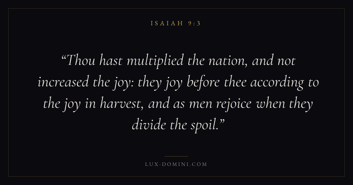 Thou hast multiplied the nation, and not increased the joy: they joy before thee according to the joy in harvest, and as men rejoice when they divide the spoil.