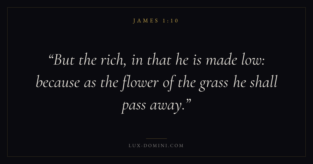 But the rich, in that he is made low: because as the flower of the grass he shall pass away.