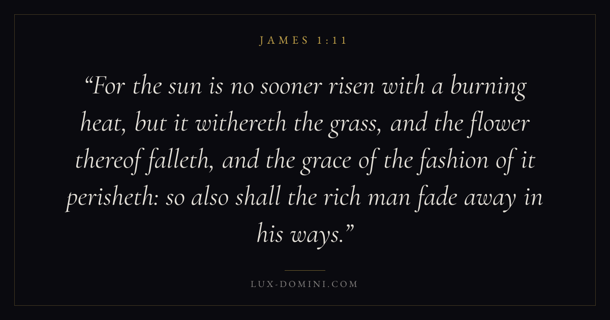 For the sun is no sooner risen with a burning heat, but it withereth the grass, and the flower thereof falleth, and the grace of the fashion of it perisheth: so also shall the rich man fade away in his ways.