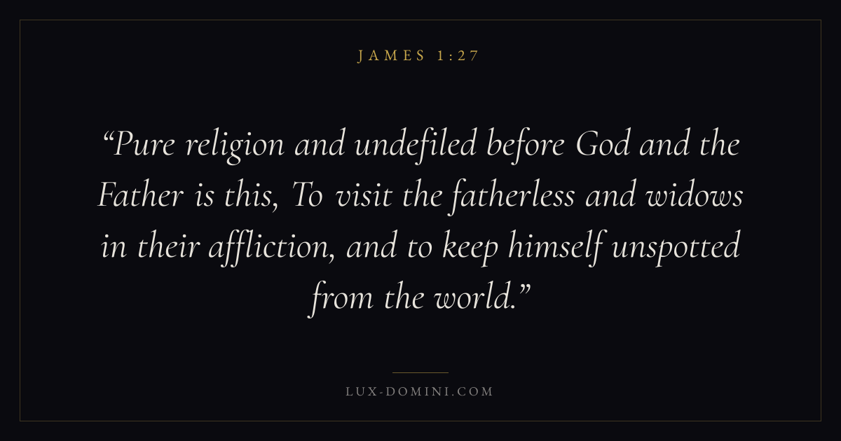 Pure religion and undefiled before God and the Father is this, To visit the fatherless and widows in their affliction, and to keep himself unspotted from the world.